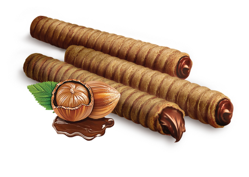 Deliciosos barquillos rellenos de chocolate y avellana