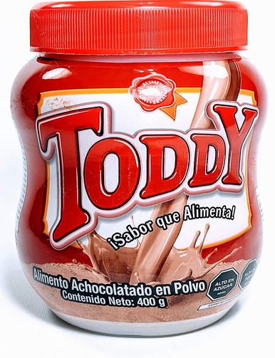 Toddy® es una tipica bebida venezolana de chocolate en polvo llena de vitaminas y minerales muy popular en nuestra tierra. Unidad de 400gr
